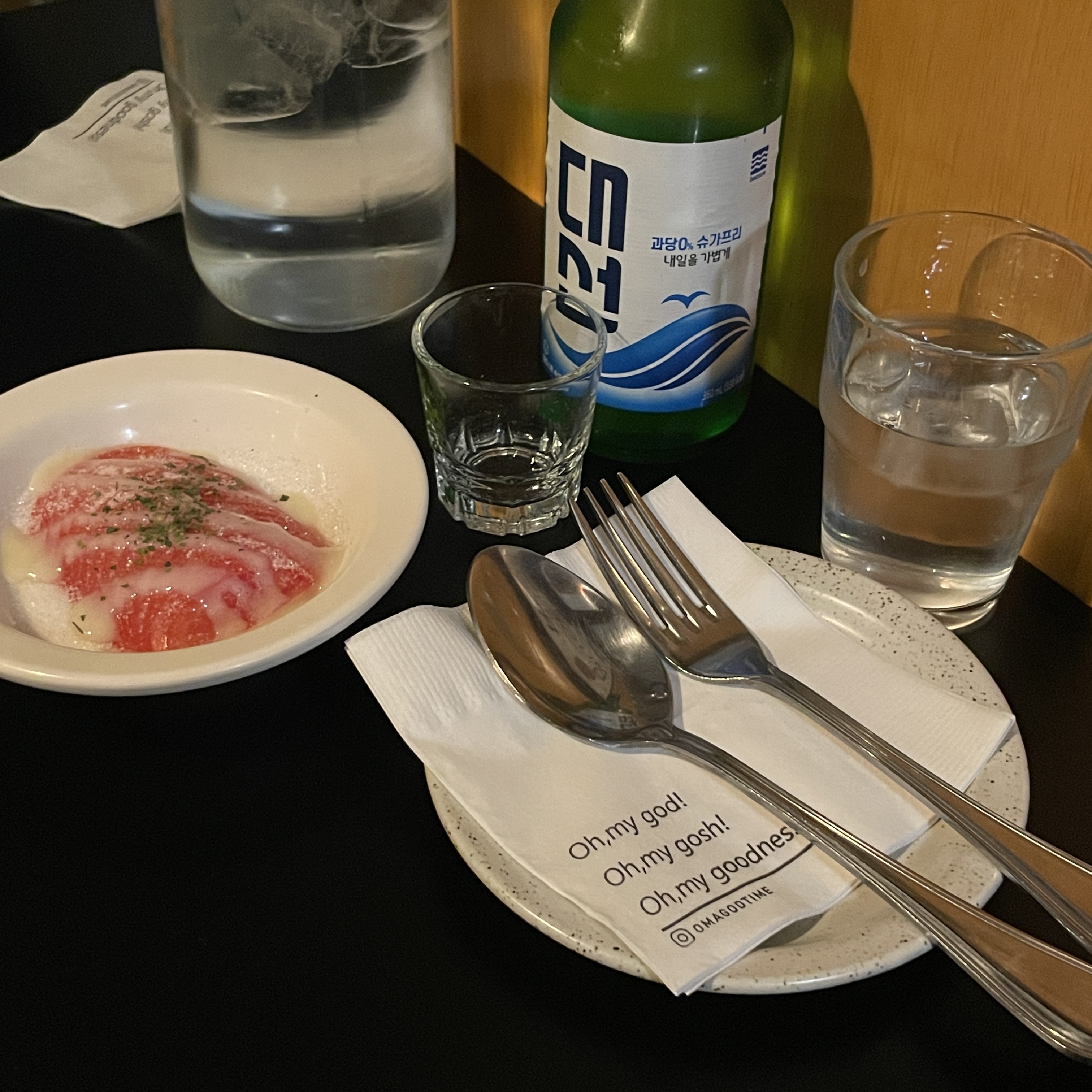뭔가 소주랑 잘 어울리는 음식 메뉴들은 아니지만 소주파인 깜냐미는 다이닝 바에서도 소주!!!