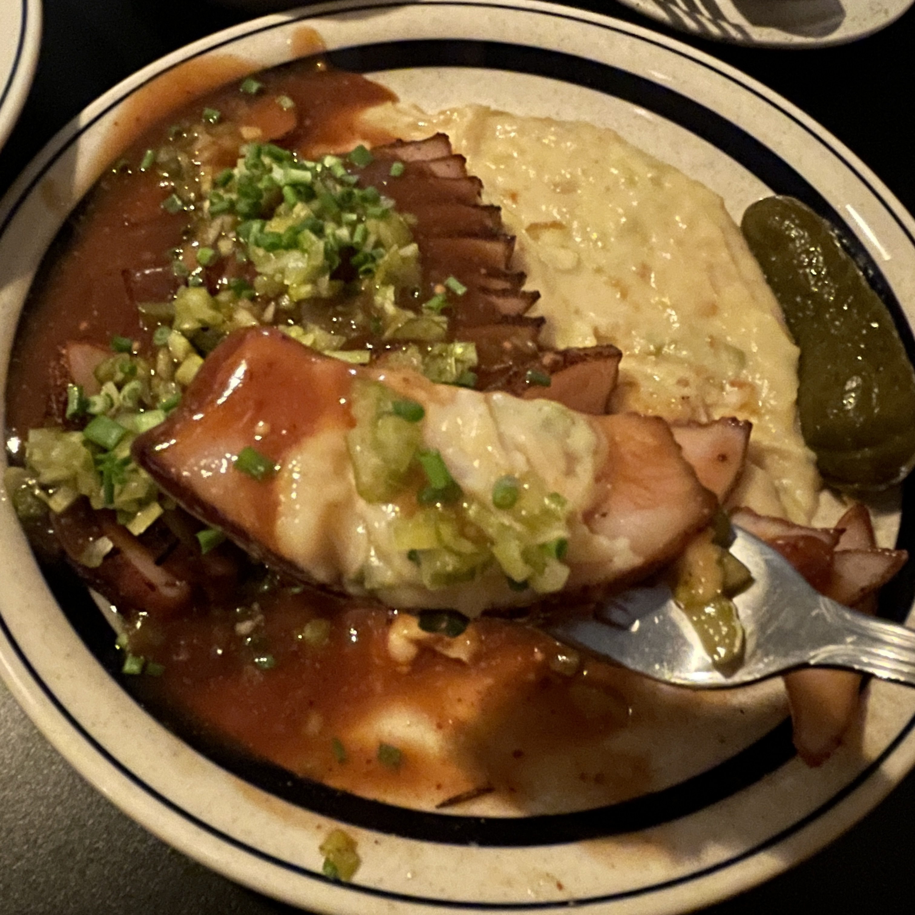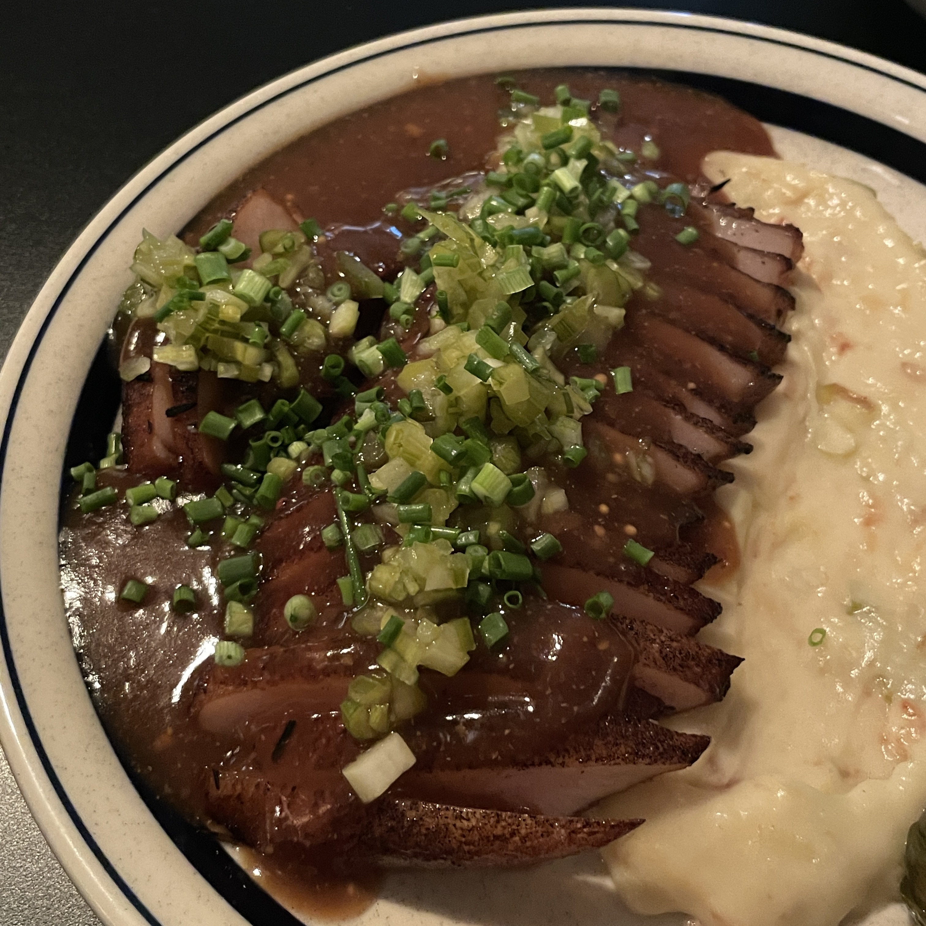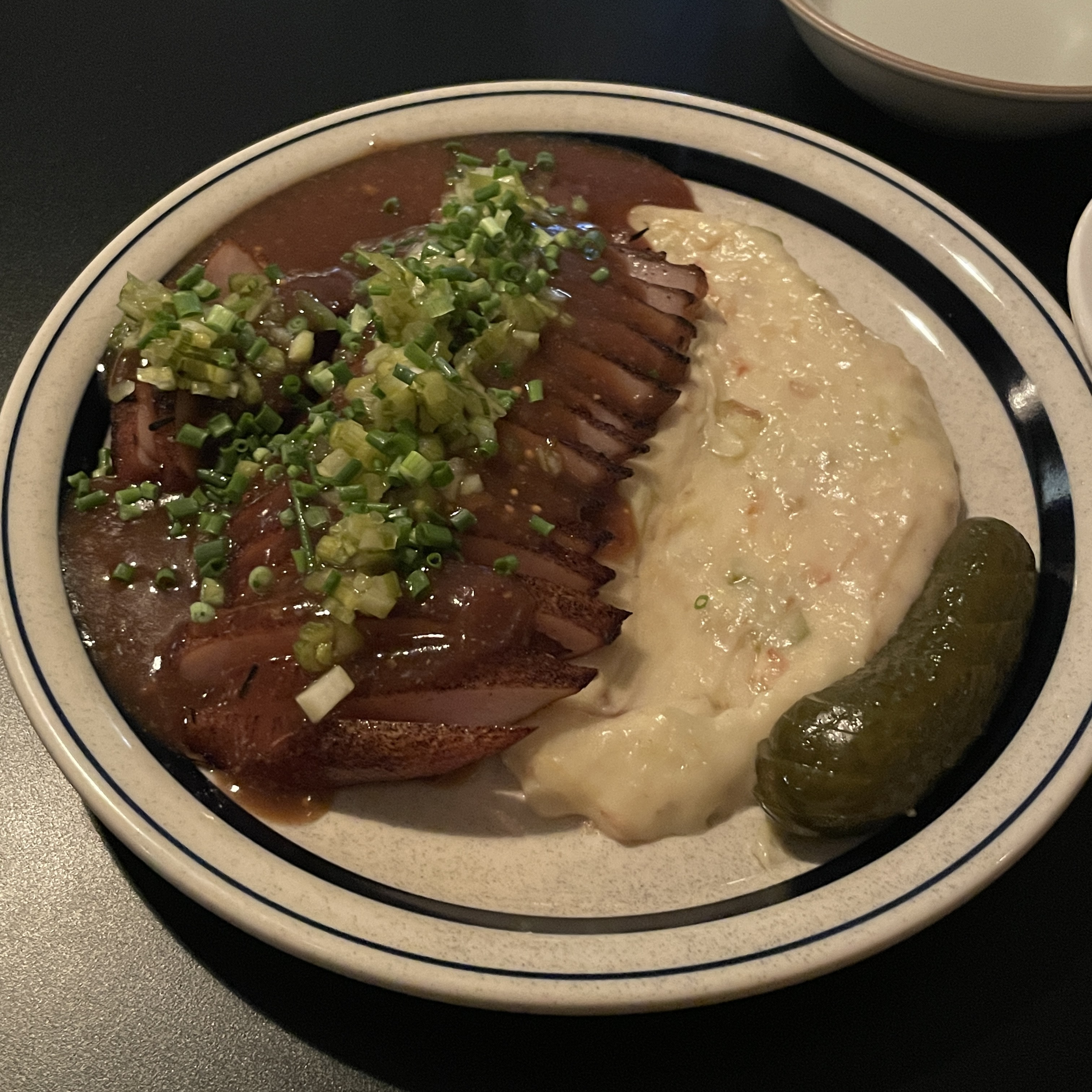 매쉬드 포테이토, 데미글라스 소스, 수비드 항정살, 피클