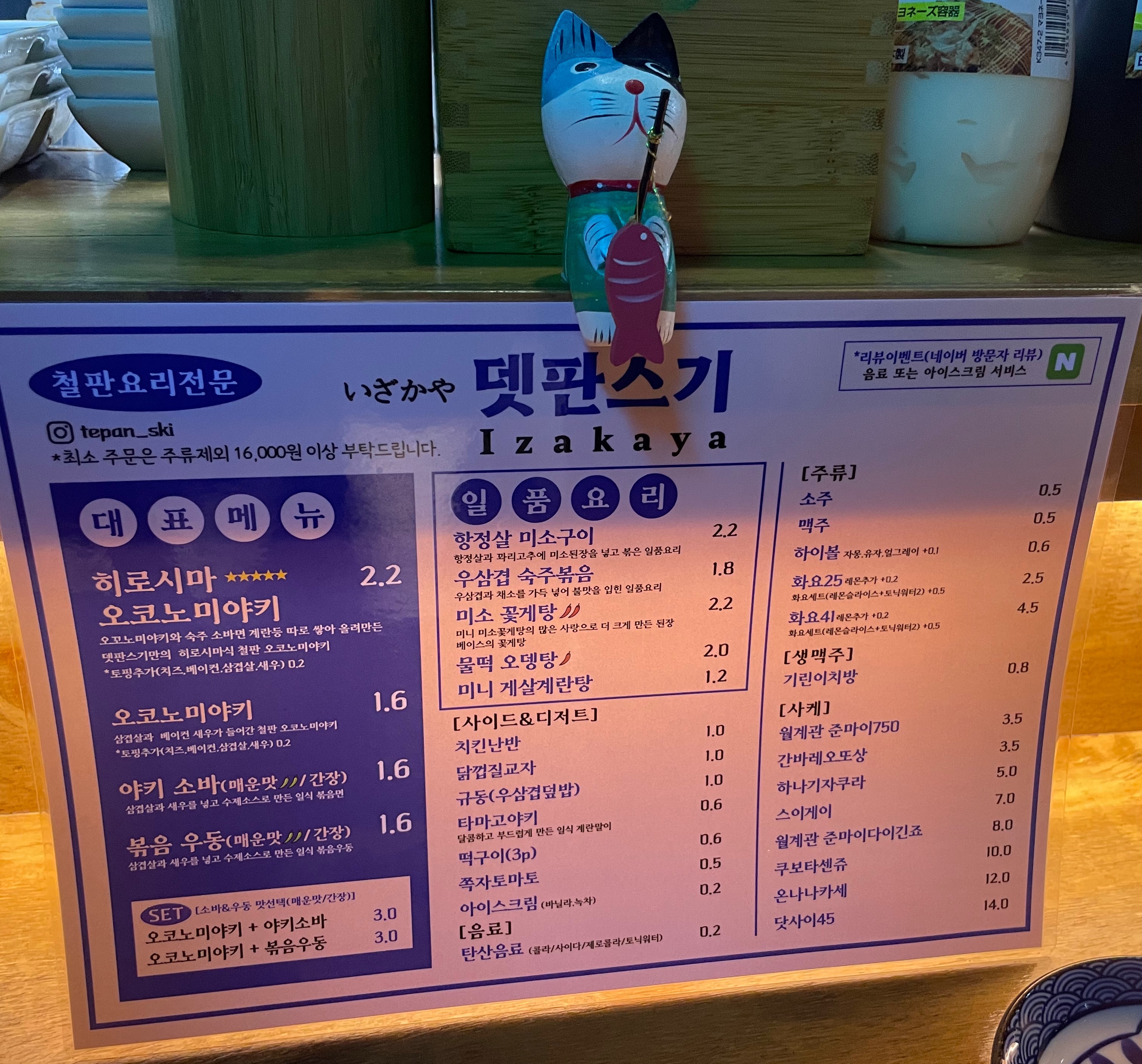 [뎃판스기 메뉴판]