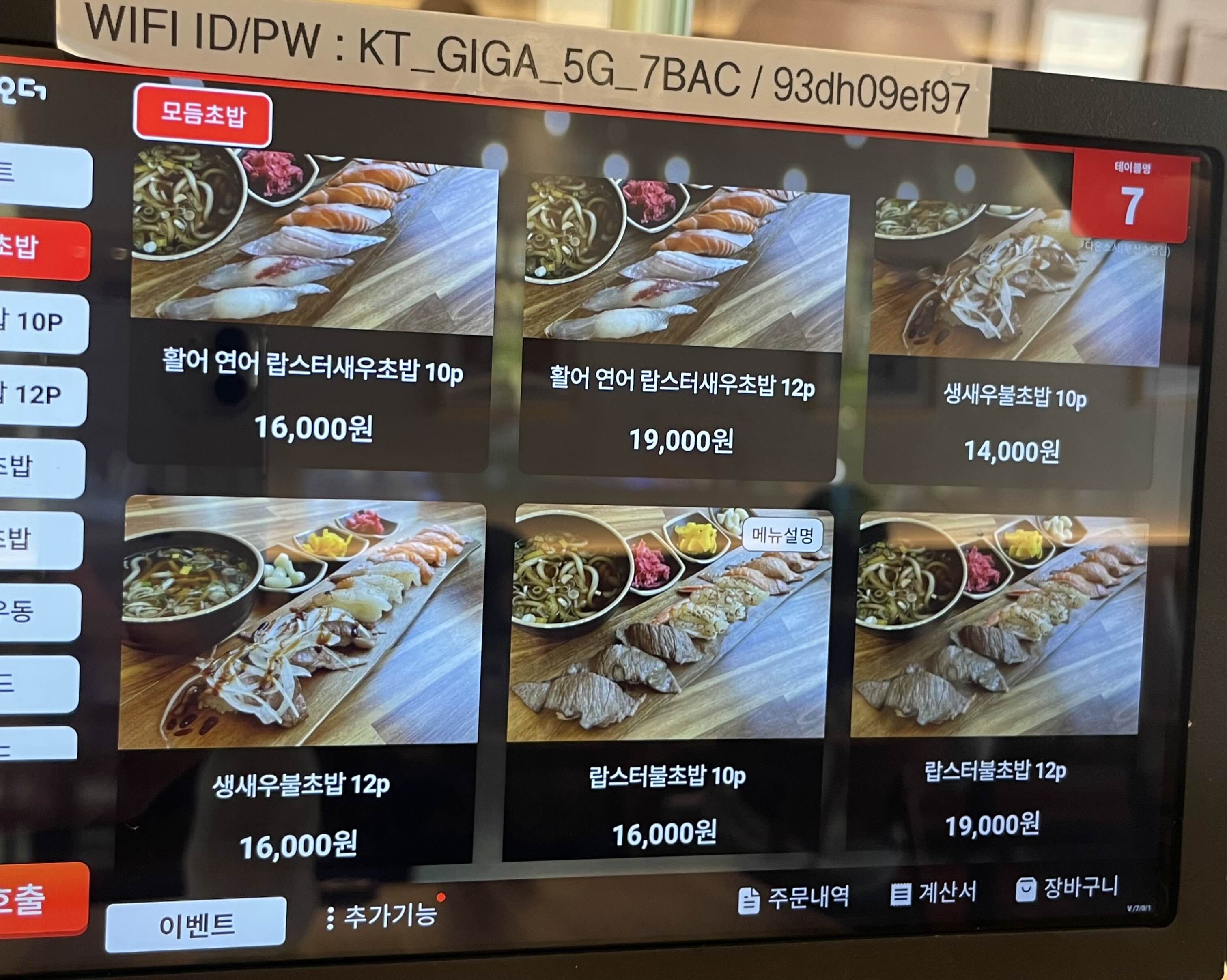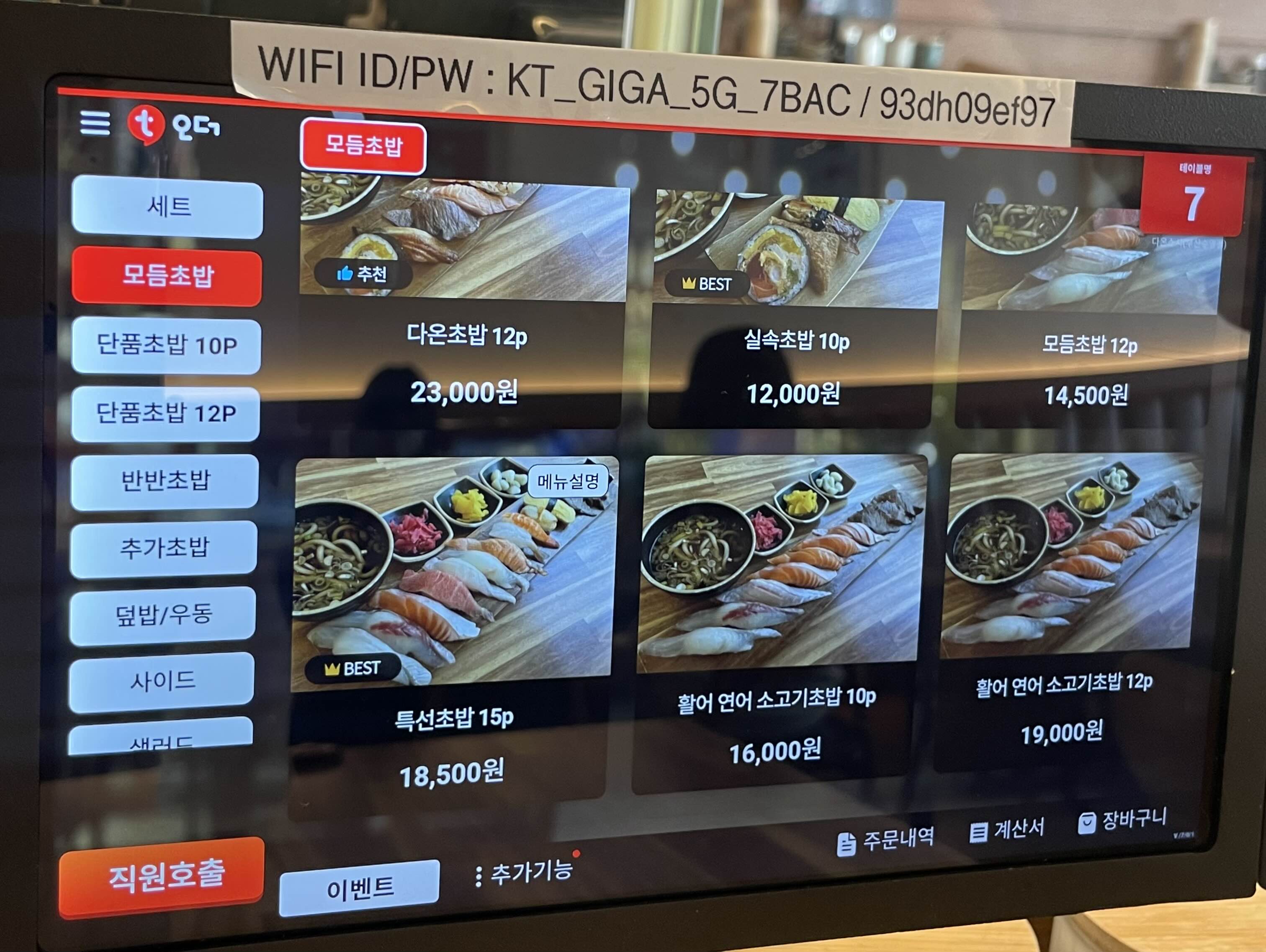 태블릿 주문방식으로 메뉴를 한눈에 볼 수없어 한 장 한 장 찍어봤어요