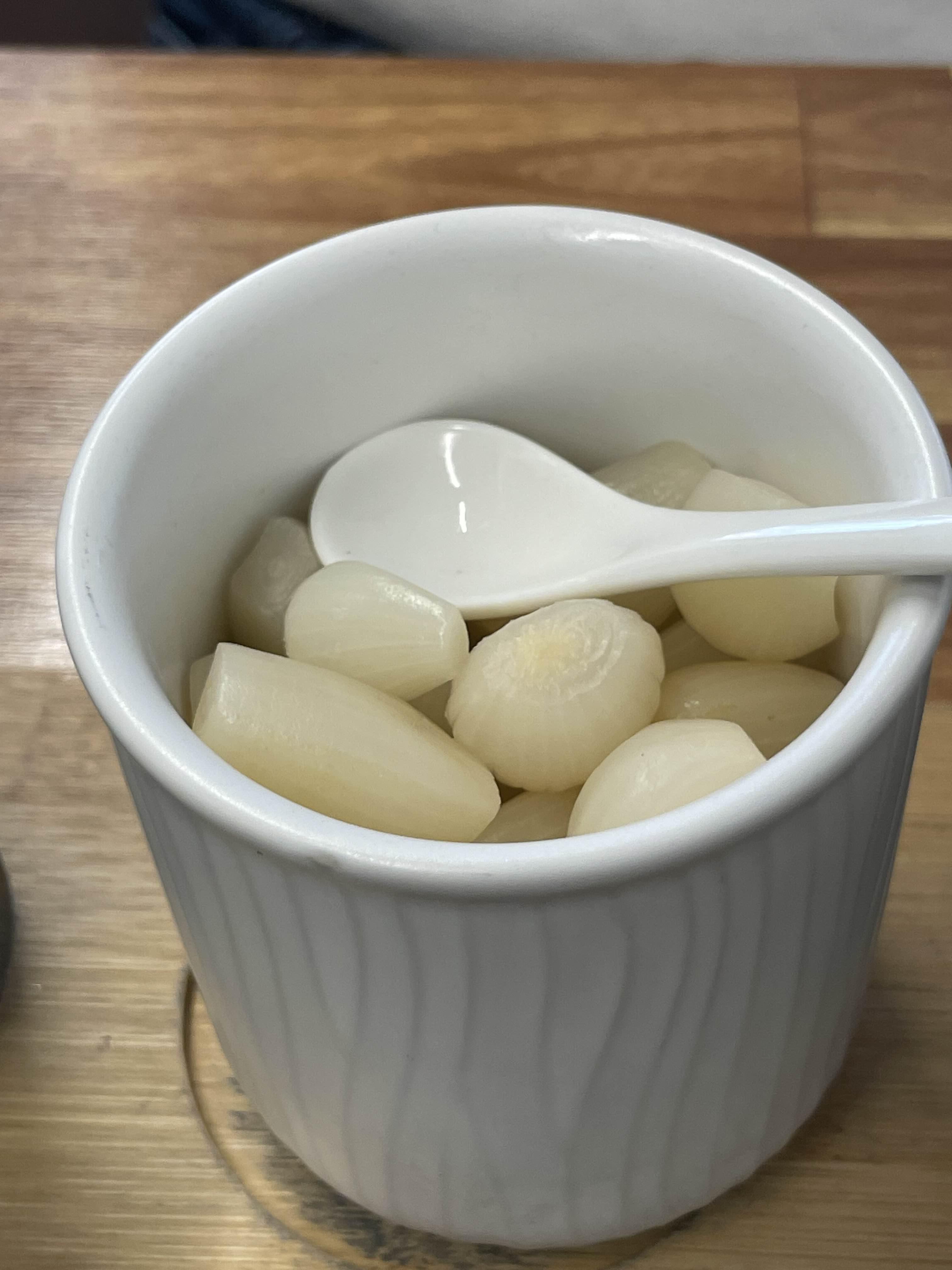 각 테이블에 단무지무침, 초생강, 락교가 준비되어 있어 마음껏 덜어먹을 수 있어요